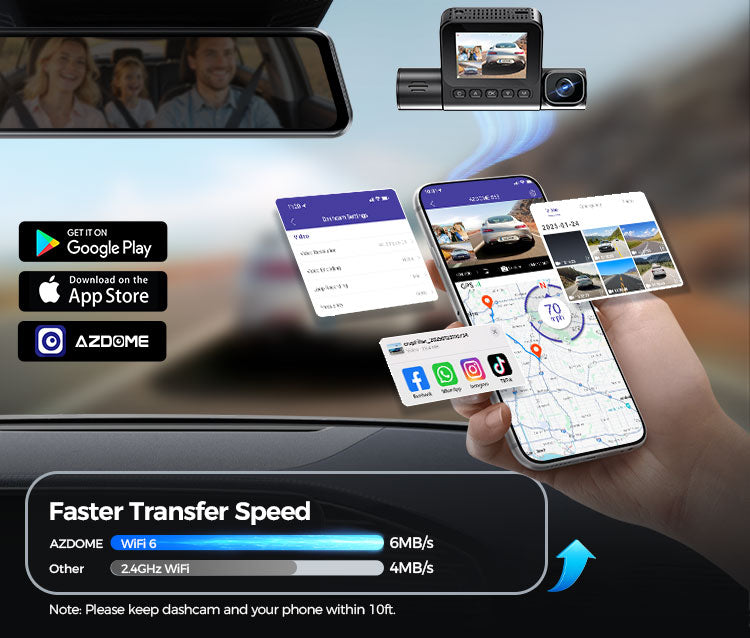 L'AZDome S58 4G è dotata di wifi, che consente di visualizzare facilmente tutte le immagini tramite smartphone. Il wifi ha una portata di circa 10 metri. L'app AZDome è disponibile per telefoni e tablet iOS (Apple) e Android. Tramite l'app è possibile visualizzare e scaricare le immagini, senza dover rimuovere la scheda SD dalla telecamera.
