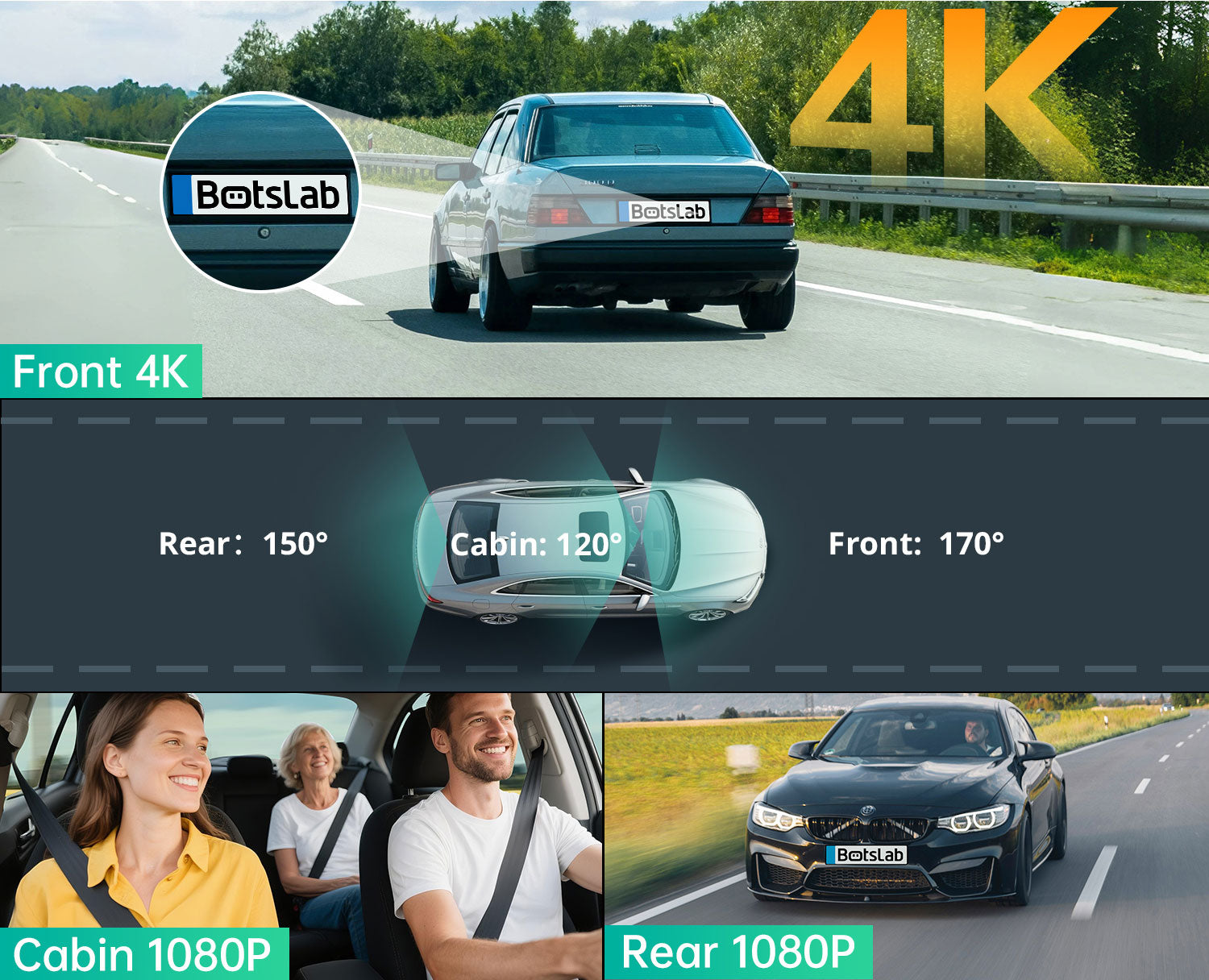 La Botslab G980H Pro 3CH realizza riprese eccezionali grazie all'utilizzo dei sensori di immagine Sony. Questi sensori super potenti garantiscono immagini nitidissime e sono impareggiabili soprattutto al buio. I video vengono registrati in risoluzione 3K nella parte anteriore e FullHD per l'interno e la parte posteriore.