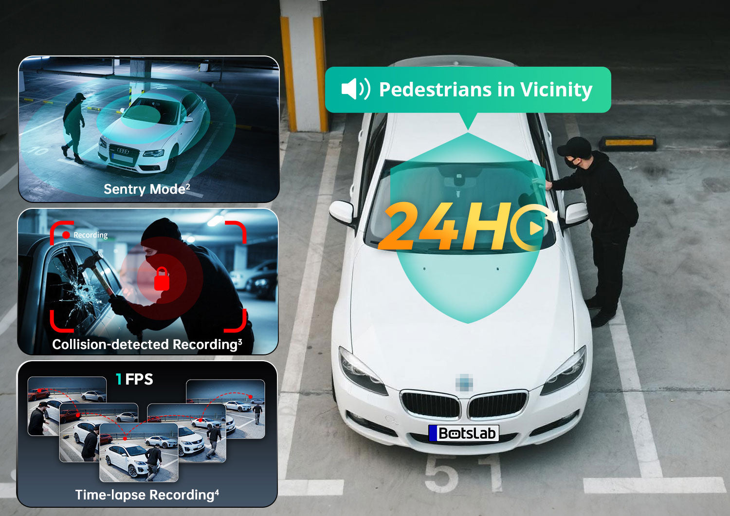 La dashcam Botslab G980H Pro 3CH inizia a registrare automaticamente all'avvio dell'auto e smette di registrare quando l'auto viene spenta. Non dovrete quindi più preoccuparvi di controllarla quando è montata nell'auto.