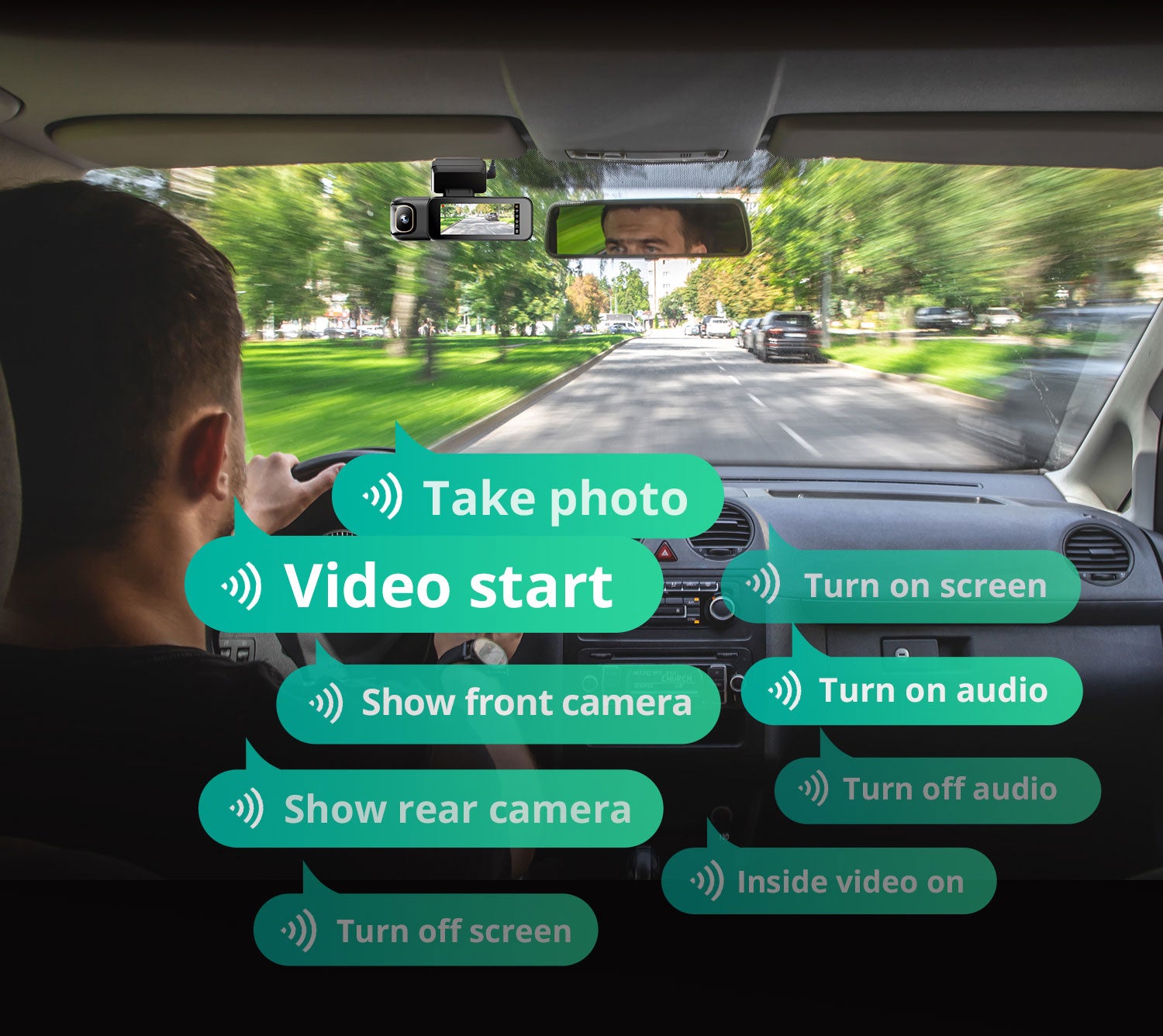 La dashcam può essere controllata tramite comandi vocali (in inglese). Sono supportate, tra le altre, le seguenti azioni: