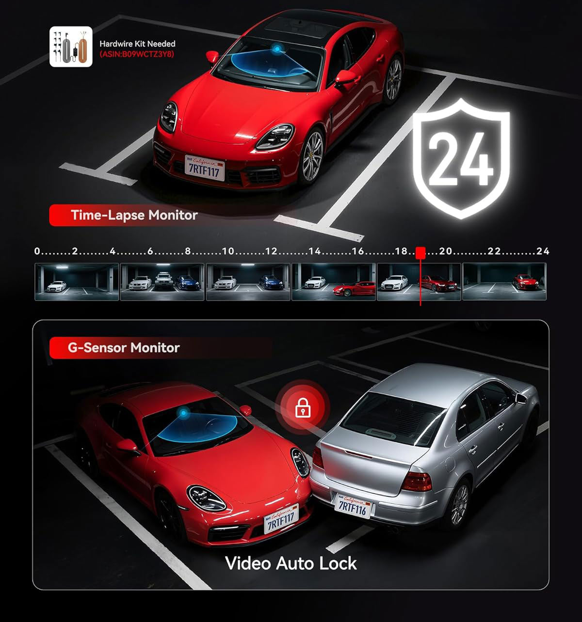 La Redtiger F11 dispone di una parkmodus automatica per proteggere la tua auto quando è parcheggiata. In caso di movimento o impatto, viene avviata automaticamente una registrazione.