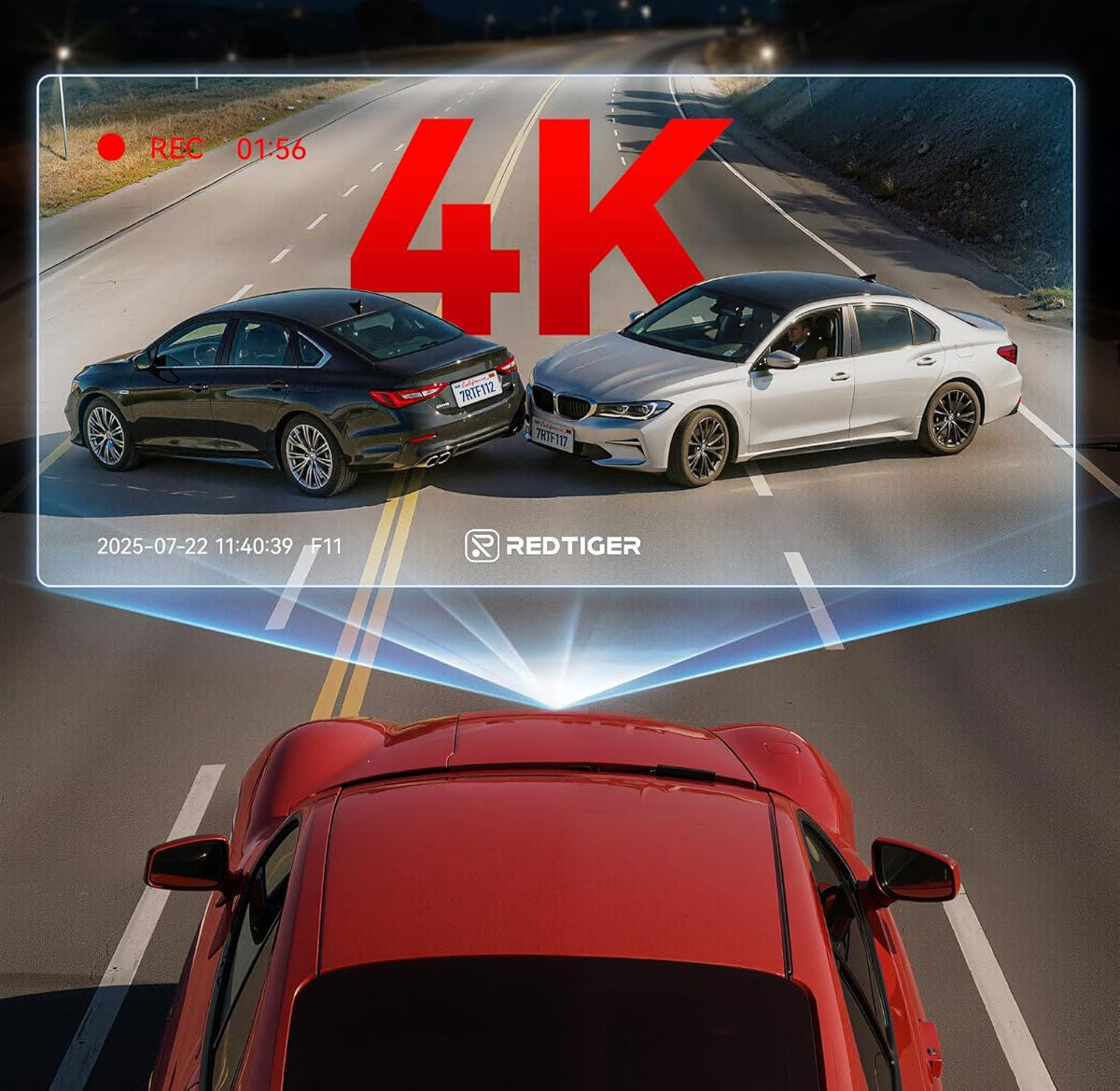 La Redtiger F11 registra in nitida risoluzione Ultra HD 4K (3840×2160). Grazie all'alta risoluzione, le situazioni del traffico, le targhe e i dettagli vengono registrati in modo chiaro, rendendo la dashcam adatta come prova in caso di incidenti.