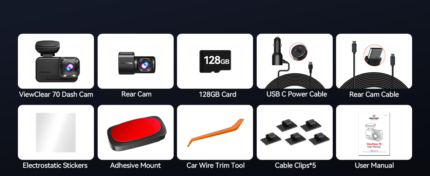 Redtiger ViewClear 70 4K Touch Wifi GPS 2CH 128gb dashcam