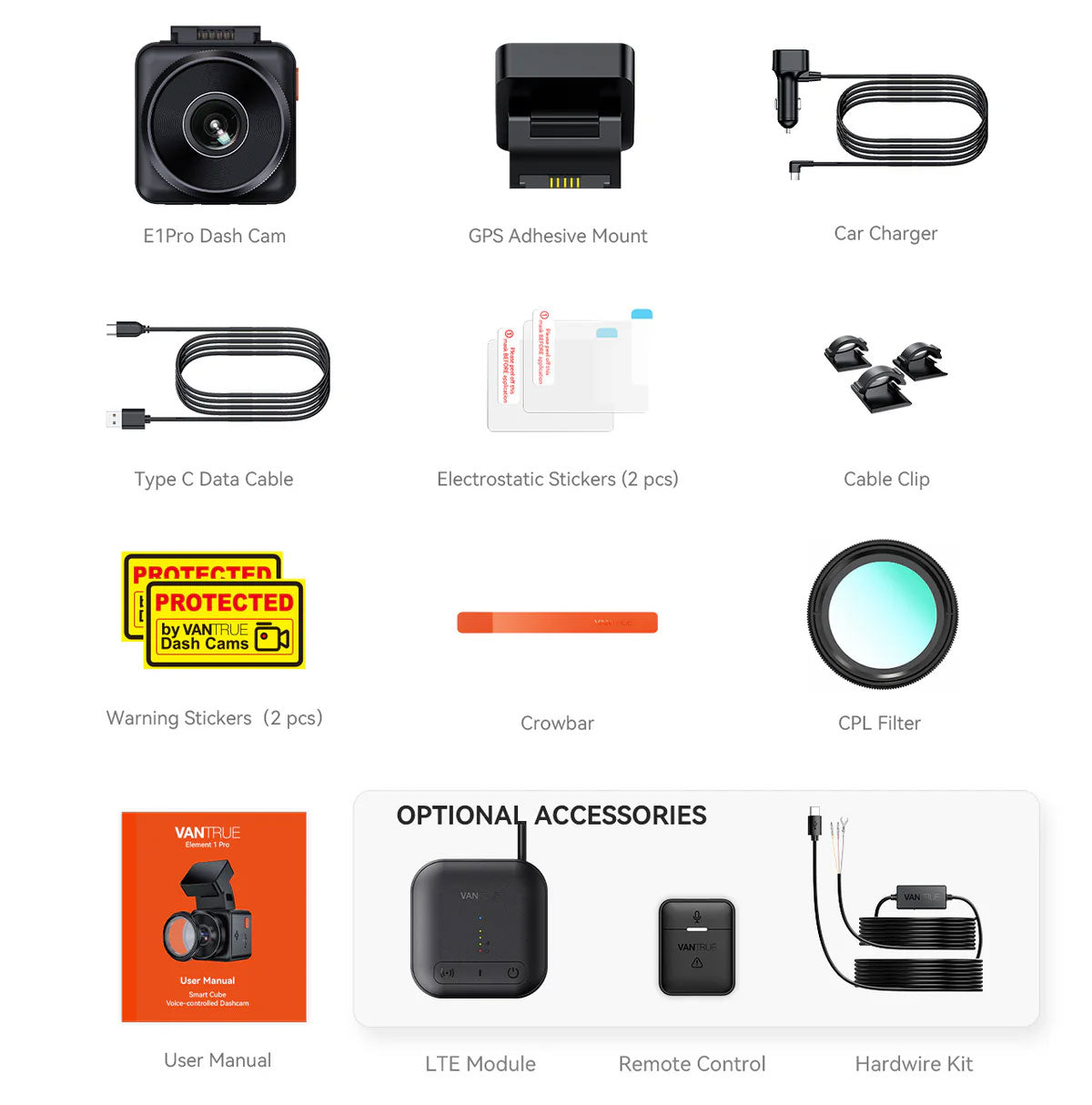 Forte la funzione più interessante di questa Vantrue E1 Pro è la possibilità di connettersi alla dashcam da qualsiasi parte del mondo. Il modulo Vantrue LTE (vedi accessori) supporta schede SIM con connessione Internet attiva. Basta collegare il modulo Vantrue LTE alla dashcam per avere una connessione Cloud completa in qualsiasi parte del mondo.