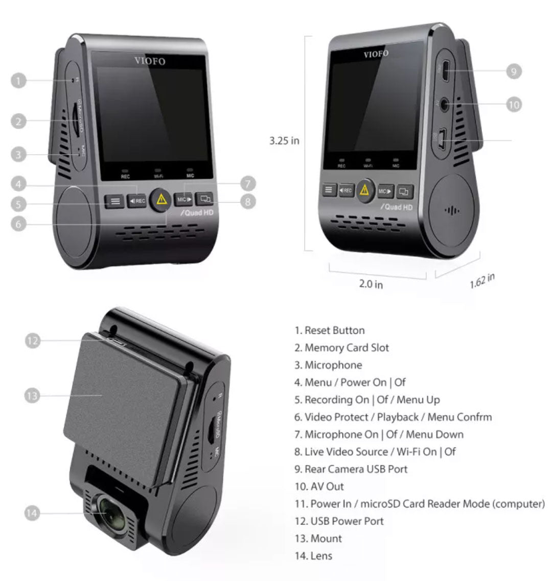 Deze Viofo A129 Plus dashcam heeft een 2.0 inch LCD scherm. Op het scherm worden de live beelden weergegeven en kan het menu eenvoudig worden bediend. De ingebouwde screensaver schakelt het LCD scherm desgewenst automatisch na een ingesteld aantal minuten uit zodat het geen hinder voor de bestuurder oplevert.