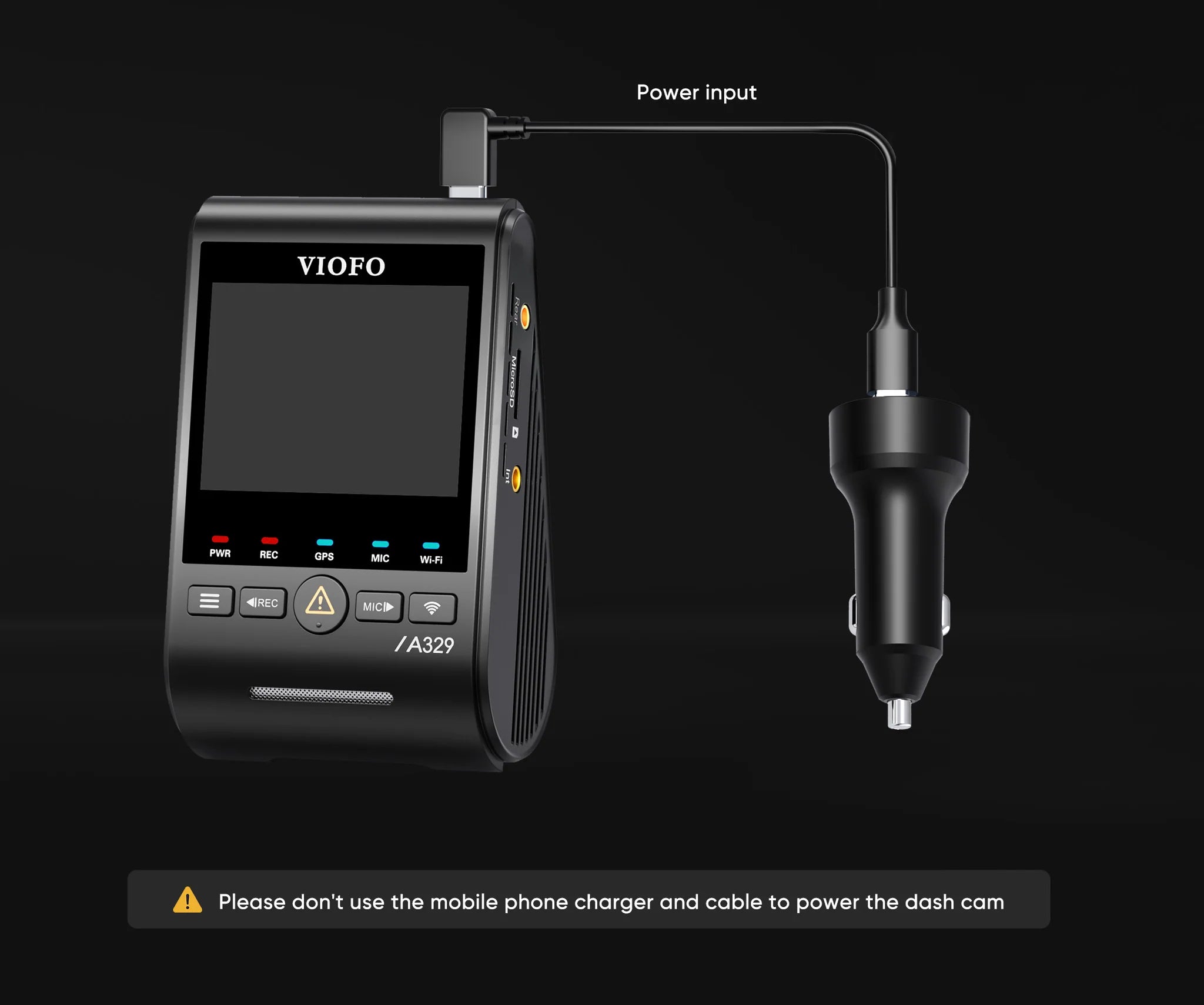 La Viofo A329S 1CH dashcam inizia a registrare automaticamente all'avvio dell'auto. Non è quindi necessario controllarla quando è installata nell'auto. L'unico requisito è che sia collegata all'alimentazione dell'auto.